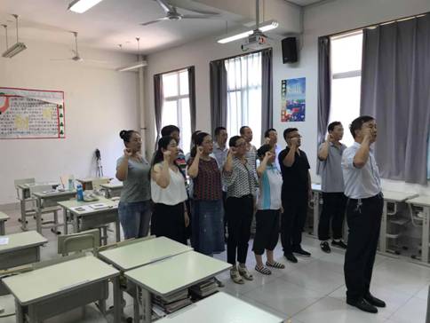 最后,全体党员重温入党誓词,面对鲜红的党旗进行庄严宣誓,牢记入党初心和职责使命,凝心聚力谋发展,在学院各项工作中力争上游,努力开创新时代。