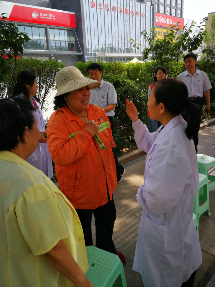 6月1日上午,根据奎文区大虞街道东庄社区的要求,食品药品学院党支部组织部分党员教师,在东庄社区开展“健康义诊”进社区公益服务活动,义务为社区居民进行身体健康情况诊断,深受广大市民的好评。
