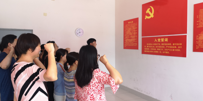 7月4日下午,食品药品学院党支部在支部书记的带领下,重温入党誓词,面对鲜红的党旗进行庄严宣誓,牢记入党初心和责任使命,凝心聚力谋发展,在学院各项工作中争上游,努力开创新时代。