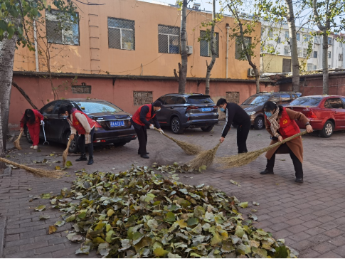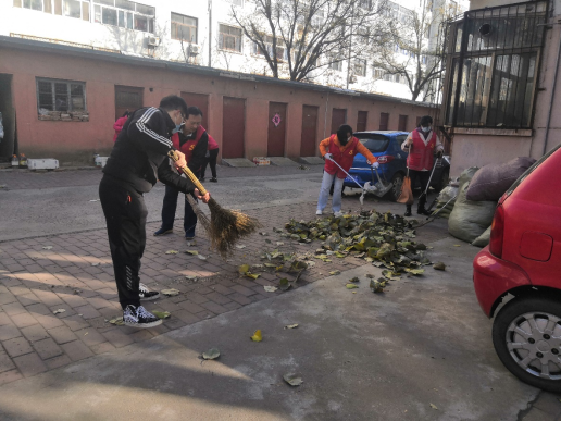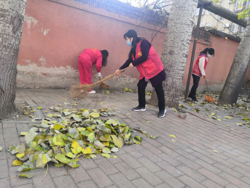 在活动中,党员教师们深入社区内居民小区,看到小区内树木较多,地上落满了树叶。尤其是隐藏在角落里的落叶,如果得不到及时清理,稍不小心有可能会诱发火灾,将会带来很大的安全隐患。教师们拿起扫帚、垃圾钳等卫生工具,进行了环境卫生清理,认真地将地面上和隐藏在墙角、杂物角落里的落叶进行了彻底的清扫,并将清扫的落叶及其他垃圾进行分类处理,使小区内环境焕然一新,同时有效排除了安全隐患。活动现场,党员们身上鲜红的志愿服务红马甲形成了小区内一道靓丽的风景线。