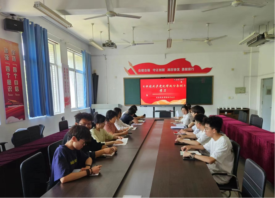 活动中,团总支书记带领学生们学习了《中国共产党纪律处分条例》内容,她强调,新修订的《条例》已于2024年1月1日起施行,党员要深刻领会开展党纪学习教育的意义,切实增强学习的自觉性和坚定性,坚持学深学透,确保入脑入心,真正把《条例》的各项规定转化为日常而不觉的行为习惯。随后,社区又组织同学们进行个人自主学习,通过阅读原文、查阅资料等方式深入理解《条例》内容。提高同学们自主学习的能力,增强对《条例》的记忆与理解。同学们结合学习和工作实际展开了交流研讨。
