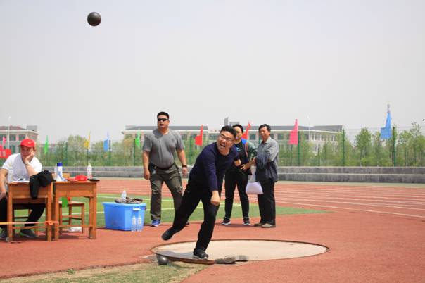 值得一提的是杨勇老师,一个人报了两个项目,100米的短跑和极需臂力力量的铅球。运动会开始前他就早早换好了运动鞋,做了热身运动。万事俱备,只欠一声枪响。只听“砰”的一声,百米冲刺开始了。从枪声响起那一刻起,拼尽全力向前冲,没有一丝苟且,从他的表情里我们可以感受到一种“背水一战”的决心。百米冲刺一结束,杨老师也顾不得擦汗喝水,跑向铅球比赛区域。这时的他已经消耗了很多能量,可他却没有半点松懈的状态,只见他拿着七八公斤的铅球,站在投掷圈内,蓄势待发。这时他以迅雷不及掩耳之势抡起胳膊将铅球扔了出去。那球伴随着一天自然且完美的曲线飞了八米多远。看到这里,我不得不佩服杨勇老师。铅球飞落地动摇,百米冲刺本领高。只想道一句:杨勇老师,好样儿的!两个第二名,我们的荣誉!