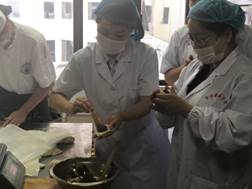 为进一步提升人才培养质量,提高学生生产实训水平,8月31日上午,食品药品学院院长带领食品技术教研室主任和部分骨干教师到鸢飞大酒店学习月饼制作。鸢飞大酒店领导对老师们的到来表示热烈欢迎,并安排高级面点师做了热情接待。 首先,高级面点师钟师傅对食品药品学院学生月饼实训的产品进行了评价,并对生产工艺提出了专业的建议,包括优化月饼面皮制作工艺、调整馅料配方比例、调整烘烤温度与时间等。 随后,在钟师傅的演示指导下,食品技术教研室教师学习并亲自参与了重油月饼、酥皮月饼的制作。制作过程中双方就月饼和面、称重、擀皮、包馅、压膜、烘烤等各环节的关键技术进行了深度交流。经过交流学习,老师们制作出的月饼品相更加金黄饱满、口感更加软糯细腻,香甜可口、质量稳定。显著提升了月饼制作水平,为进一步提高学生生产实训水平提供了坚实的基础。 本次到鸢飞大酒店学习月饼制作,一方面强化了食品药学院大学生创新创业中心的实训师资力量,为学生生产实训打下了良好的基础,另一方面通过让一线教师走进企业的方式提升了教师实训教学能力,提高了专业人才培养方案与实际生产的契合度。老师们纷纷表示,此次学习交流,受益匪浅,下一步要将所学应用到实际教学工作中,不断提高教学质量和水平,为学院“双创”工作做出应有的贡献。