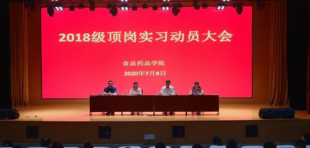 为进一步做好2018级学生的顶岗实习工作,7月8日下午,食品药品学院在滨海校区图书馆报告厅召开2018级顶岗实习动员大会。食品药品学院领导班子、各科室负责人、辅导员、2018级班主任以及全体2018级学生参加,会议由食品药品学院党总支书记主持。