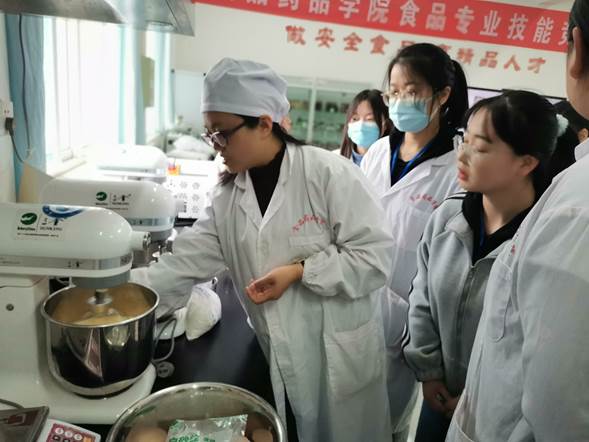 4月1日下午,食品药品学院美味坊加工社团部分骨干成员在实训中心开展了新学期“美味清蛋糕”制作活动,进行技能锻炼。