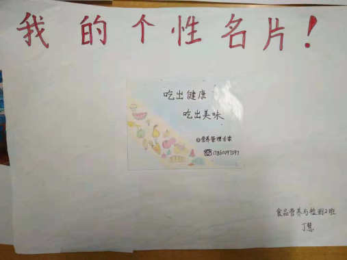 活动得到了广大学生的踊跃参与,共收到名片设计作品56张,通过分析了解自身能力、才华和性格特点,设计的名片涵盖了营养配餐师、食品检验工等不同职业岗位,名片设计主题鲜明、构思巧妙、创意独特,具有想象力和个性表现力,充分展示了同学们的未来职业的定位和努力的方向,进一步增强了同学们对自身职业生涯的规划。