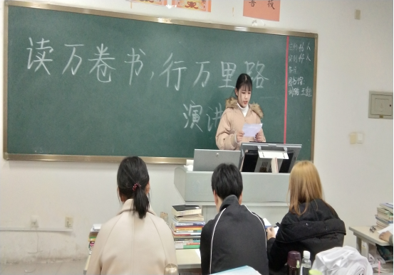 为了更好的培育同学们好读书、读好书的优良习惯,11月28日晚于惠泽一号楼B222举办了“读万卷书,行万里路”--演讲比赛。各学生会部长及副部担任了评委,共有14名同学参加了比赛。