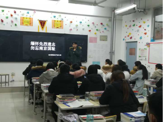 为铭记历史,振奋民族精神,激发同学们的爱国热情,食品药品学院于12月13日晚组织开展了“纪念国家公祭日”系列活动,各班同学认真对待,值班老师全程靠班。