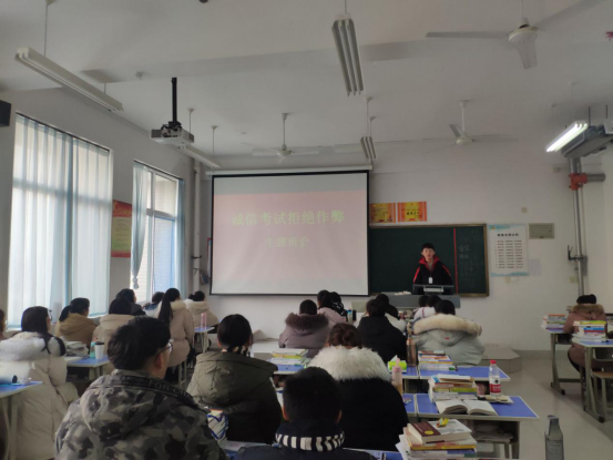 期末将之,为了树立良好的考风、考纪,增强大学生的诚信意识,给同学们营造一个良好的考试氛围,1月2日,食品药品学院组织开展了“诚信考试,拒绝作弊”主题班会活动。