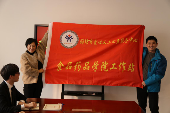 为切实发挥高职院校服务社会功能,提升大学生志愿服务水平,食品药品学院创新志愿服务模式,联合潍坊义工,建立潍坊义工食品药品学院工作站。1月4日上午,潍坊义工食品药品学院工作站挂牌暨捐赠仪式在清泽楼会议室举行。潍坊市爱心义工公益服务中心理事长、党支部书记刘国栋,公益文化发展部部长张海龙、食品药品学院党支部书记、学院分管学生负责同志、学院分管教学负责同志、辅导员办公室主任(团总支书记)、大学生志愿者代表参加了仪式活动。
