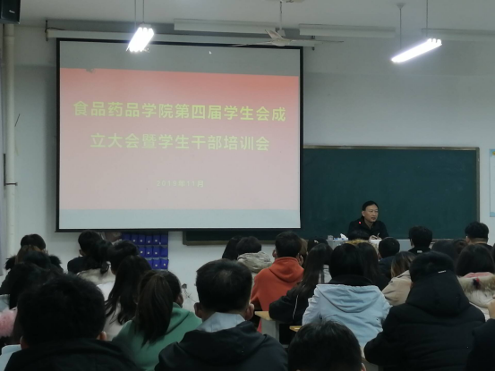 为进一步稳定学生思想,提高学生会的综合能力,让学生明白如何成为一位合格的、称职的学生干部,食品药品学院于11月21日在惠泽一号楼B区216教室召开了第四届学生会成立大会暨学生干部培训会。食品药品学院分管学生负责人作为主讲向食品药品学院全体学生干部做了培训。