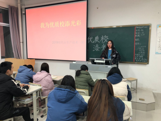 为了激励广大学生积极投身优质校建设,为学院增光添彩,同时展现食品药品学院学生得良好精神风貌,增强学生对学院的凝聚力和向心力,提高学生对学院的认同感、荣誉感和自豪感,食品药品学院团总支于12月8日晚自习期间组织各团支部开展了以“我为优质校添光彩”为主题的团课。