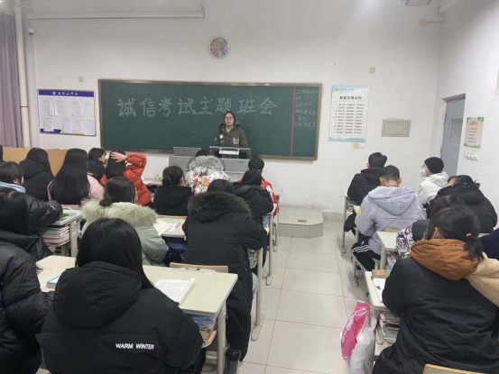班会上,班主任就考试安排、考试纪律等进行了详细讲解。期末考试是教学质量和学业质量的一次重要检验,我院历来高度重视学风建设,通过主题班会,不仅让学生从思想上树立诚信考试的理念,也让学生在行动上做到诚信考试,不断加强考风考纪建设,维护考试的公平性和严肃性,同时将诚信二字落实到现实生活中来。