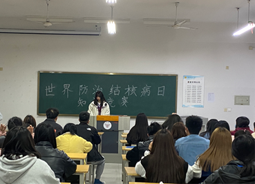 活动主要包括主题团课、知识竞赛两部分。主题团课上,各班负责人通过健康知识宣讲、多媒体播放视频等形式向同学介绍了本次活动的意义。通过团课让同学们了解了有关结核的各种知识,为预防结核病在校园传播做出了打下了基础。知识竞赛活动中,同学们通过从题库中抽取部分题目进行竞赛答题。通过最后的角逐评选出一等奖3名,二等奖4名,三等奖6名。活动后,同学们纷纷表示要多主动了解结核病相关知识,养成良好的生活习惯,让我们远离结核危害。