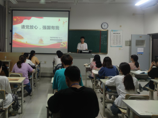 本次活动形式多样,内容丰富,主要围绕“请党放心,强国有我”主题开展主题团课,进行学习讨论,发表感悟等等。在主题团课上,同学们重温了建党100周年大会和习近平主席讲话,回顾革命先烈的光荣事迹,感受如今新中国的繁荣强盛。观看视频后同学们进行了激烈的讨论,纷纷发表感悟,青年是祖国的希望,青年强则国强,在未来的进程中,每个人都是不可缺少的一份子。同学们铿锵有力、激情饱满的喊出“请党放心,强国有我”!这是青年们对党的庄严承诺。