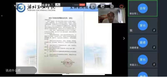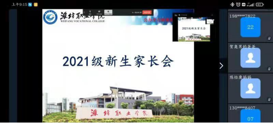 家长会通过钉钉群直播、微信等形式进行,要求学生、家长共同参加。家长会上,各班主任首先把开学一个月的工作做了汇报,其次把十一期间《关于做好国庆期间安全工作的通知》有关要求传达给家长,一、提高防护意识,从严落实疫情防控措施。二、提高安全意识,强化校内校外安全教育。三、提高育人意识,合理安排国庆假期生活。最后请家长签收潍坊职业学院致家长的一封信,同学们签订安全承诺书。