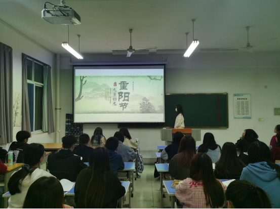 为热烈庆祝重阳佳节的到来,倡导尊老、爱老、敬老、助老的良好社会风气,弘扬中华敬老爱老的传统美德,食品药品学院于10月11日晚举办了“九九重阳节,浓浓敬老情”主题团课活动。
