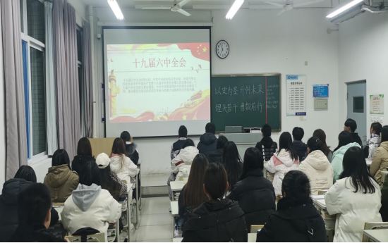 团课开始对全会的基本情况、党的百年奋斗的重大成就、党的百年奋斗的历史经验以及不忘初心实现第二个百年奋斗目标的新赶考之路四个方面对党的十九届六中全会精神进行了详细解读。大学生是国之栋梁,是民族发展的希望。同学们表示:要深入学习宣传贯彻党的十九届六中全会精神,切实把思想和行动统一到全会精神上来,以史为鉴、开创未来,埋头苦干、勇毅前行,为实现中华民族伟大复兴贡献青春力量。