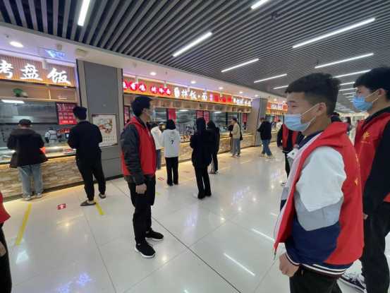 予爱协会22名志愿服务队员经过培训后,在就餐期间,积极热情地为同学们服务。他们耐心地引导同学们排队就餐,文明劝导插队、不按照一米线排队的同学、主动帮助餐厅工作人员清理桌面等。此次活动,既缩短了同学们的就餐时间,同时大大提高了餐厅员工的工作效率。