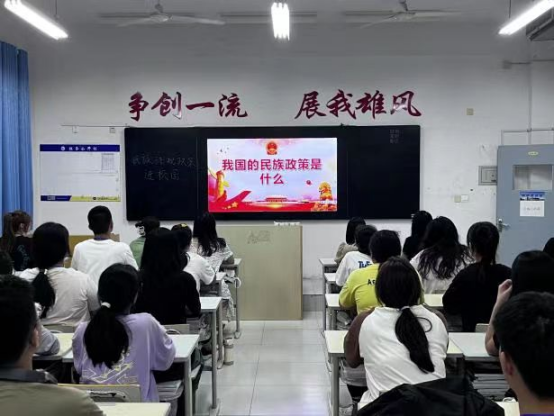 为不断深化党的民族宗教政策法规知识宣传普及,认真学习贯彻习近平总书记关于加强和改进民族工作的重要思想,落实中央民族工作会议精神和省市委民族工作会议部署要求,食品药品学院于2023年9月6日开展“民族法规进校园”主题团课。