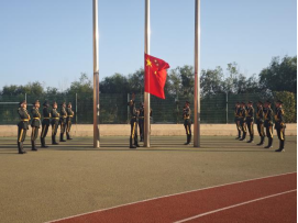 迎着和煦的阳光,伴随着庄严雄壮的国歌声,鲜艳的五星红旗冉冉升起,全体师生庄严肃立,面向国旗行注目礼。学生代表做了《礼赞新中国,奋进新时代》的国旗下演讲。演讲中回顾这75 年以来中国创造的无数奇迹。在经济领域,中国成为世界第二大经济体,“一带一路”倡议深入推进;在民生方面,实现从温饱不足到全面小康的跨越;在文化领域,优秀传统文化得到传承弘扬。75 年的辉煌成就离不开党的坚强领导,新时代的青年们要以奋斗姿态为实现中华民族伟大复兴的中国梦添砖加瓦。
