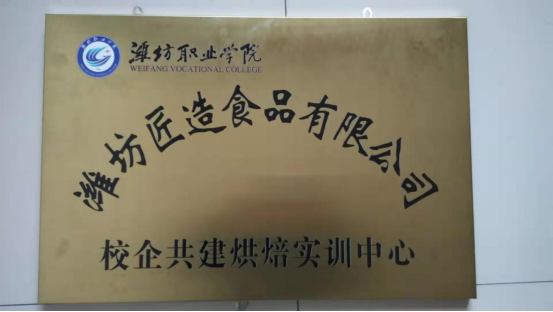 2019年12月19日,潍坊职业学院食品药品学院与潍坊匠造食品有限公司校企共建烘焙实训中心在潍坊职业学院滨海校区餐厅三楼挂牌。