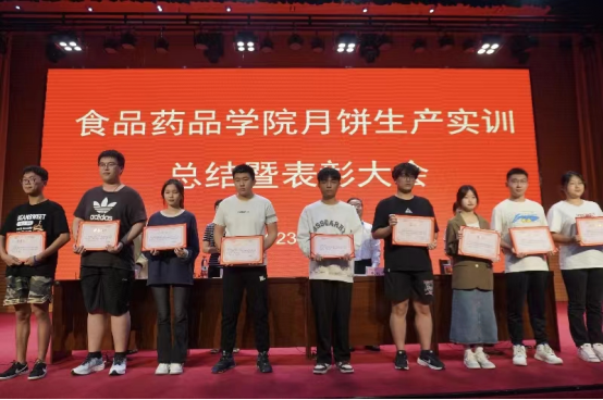 会上,陈美霞充分肯定了同学们在月饼实训中的表现,从配方设计、原料甄选到月饼制作,手法从生疏到娴熟,始终秉承食品人良心做食品的初心和使命,在生产实训中培养了团结协作、吃苦耐劳的精神,提升了职业素养。同时,她勉励同学们要志存高远,脚踏实地,利用在校时间多读经典名著,用书中的智慧指引成长,提升自我修养。食品技术教研室负责人对实训情况进行总结,按照专业人才培养方案多次研讨制定实训及考核方案,模拟企业真实生产项目引入实践教学,促进了学生在真实职业环境中学习应用知识、技术和技能。随后,大会进行表彰仪式,食品药品学院负责同志宣读了月饼生产实训表彰名单,学院领导和老师对在实训中表现优异的先进集体和优秀个人进行了表彰和颁奖,现场气氛热烈、掌声不断。