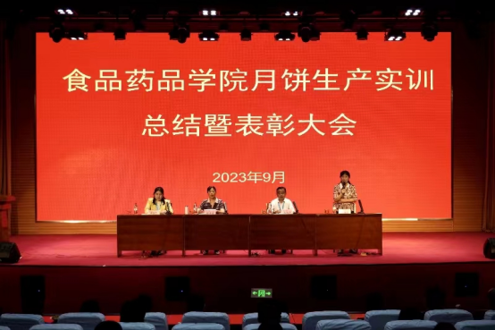 9月27日下午,食品药品学院在滨海校区图书馆报告厅召开了2023年月饼生产实训总结暨表彰大会,学院副院长陈美霞出席会议,2022级参与实训同学及指导老师参加,会议由食品药品学院党总支负责同志主持。
