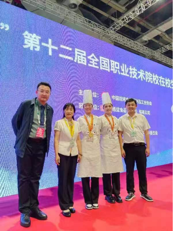 本次全国职业技术院校在校生创意西点技术大赛由全国食品产业职业教育教学指导委员会和中国焙烤食品糖制品工业协会主办。作为食品专业在校生国家级创意西点技术大赛,自初赛以来便深受各职业院校的关注,经过大赛专家组委会严格筛选、层层选拔,我院两位学生的作品进入决赛。指导教师团队克服困难、不辞辛苦、认真细致指导,两位参赛学生认真备战、反复练习。经过师生不懈努力,王梦哲和高佳宁两名同学在决赛现场表现出色,以娴熟的技艺、扎实的专业技能,展示了“保护动物—创和谐”与“家和万事兴”两份作品,最终获得了比赛的金奖和铜奖。