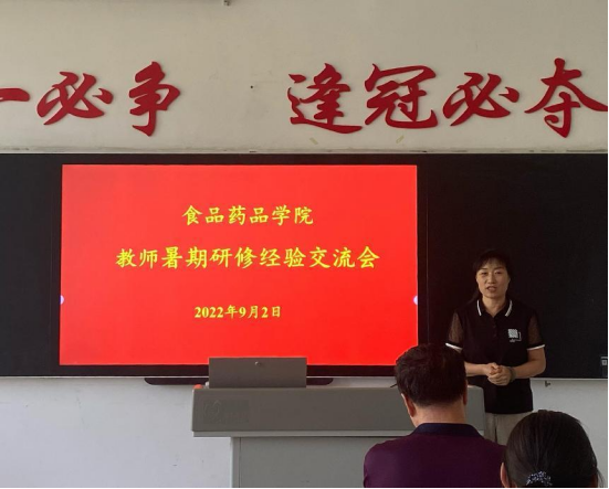 9月2日上午,食品药品学院组织开展教师暑期研修经验交流活动。活动由食品药品学院分管教学负责同志主持,全体教师参加。
