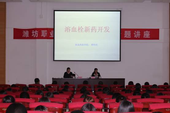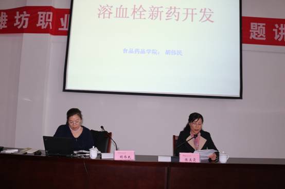 为纪念潍坊职业学院建校60周年,提高专业办学水平,振奋士气,10月27日下午,食品药品学院胡伟民教授在清泽楼413报告厅举办了一场题为“创新与创业—溶血栓新药的开发与研究”学术报告会。食品药品学院全体教师与部分学生代表听取了这场高规格的学术报告会。