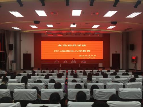 9月5日晚,食品药品学院在清泽楼报告厅开展了2016级新生入学教育。食品药品学院主要负责人、党支部书记、各分管工作负责人、各专业教研室主任、部分教师代表以及全体辅导员班主任和200多名大一新生一起参加了此次活动。