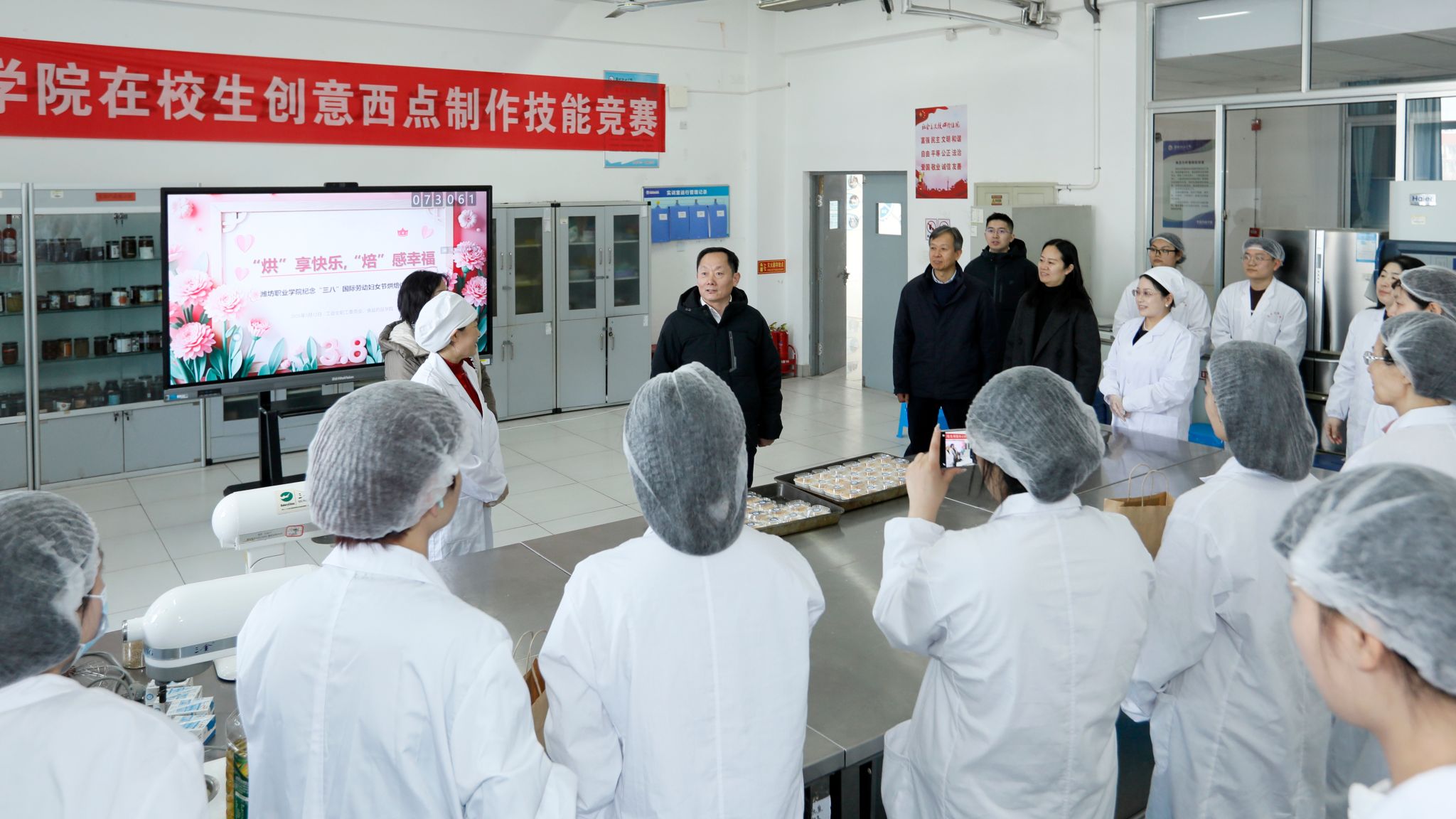 为丰富女教职工精神文化生活,3月12日,学院在滨海校区举办纪念第116个“三八”国际劳动妇女节“‘烘’享快乐,‘焙’感幸福”烘焙体验活动。学院党委书记王浩、党委委员高凌云,工会负责同志与40余名女教职工代表欢聚一堂,在香甜氛围中共度美好时光。